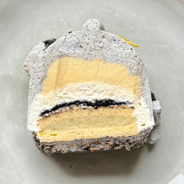 Si vous ne connaissez pas encore cette association de saveurs, il est temps de la découvrir ! L'alliance est parfaite entre l'acidité des agrumes et l'intensité du sésame noir. Sur un croustillant au praliné sésame noir, se dresse un biscuit japonais ultra moelleux garni de confit pur réalisé à base de 100% des citrons jaunes qui sont blanchis pour retirer l'amertume, puis mixés. Le yuzu est mis en valeur au travers d'un crémeux peu sucré et entouré par deux crèmes ontueuses : une chantilly au praliné sésame noir et une chantilly aux zestes de citron jaune. Le praliné pur sésame noir donnera à la bûche tout son caractère ! C'est une bûche parfaite pour terminer votre repas de Fêtes à Toulouse !
