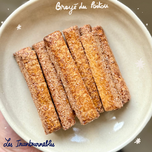 - Broyé du Poitou (sablés croquants, beurrés, légèrement salés et caramélisés)