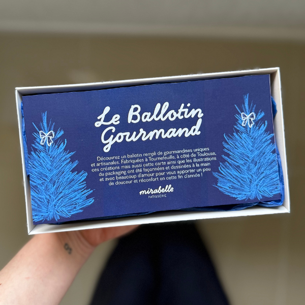 Voici des ballotins de gourmandises artisanales et uniques ! Cette année, faites votre choix entre 3 ballotins : les Incontournables, les Créations ou les Confiseries. Chaque création est exclusive ! Ces coffrets sont entièrement réalisés à la main : des illustrations du packaging aux biscuits et confiseries qui les composent. Pour offrir ou bien pour déguster les créations Mirabelle Pâtisserie avec vos proches, c'est un coffret de biscuits idéal où il y en a pour tous les goûts ! Des grands classiques, des nouveautés, des spécialités de Noël... Choisissez celui qui vous fera le plus envie !
